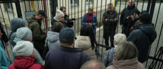 Біля будівлі «Запоріжжяобленерго» зібралися люди вимагаючи справедливих графіків відключення світла Люди зібралися під стінами Запоріжжяобленерго вимагаючи справедливі графіки світла, 17 листопада 2025. . Суспільне Новини Запоріжжя