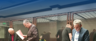 Фото з Фейбуку "Меморіалу". Засідання суду у справі Водолазського, Дзюби та Федосенка Російські окупанти