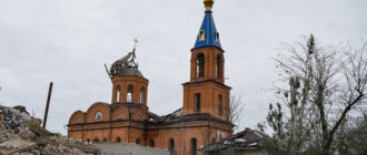 У зруйнованій церкві в Оріхові на Запоріжжі провели великодню службу та освятили паски – 65 ОМБр Зруйнований храм в Оріхові, 21 лютого 2024. Telegram/Нацполіція Запорізької області У зруйнованому храмі у Новини Запоріжжя