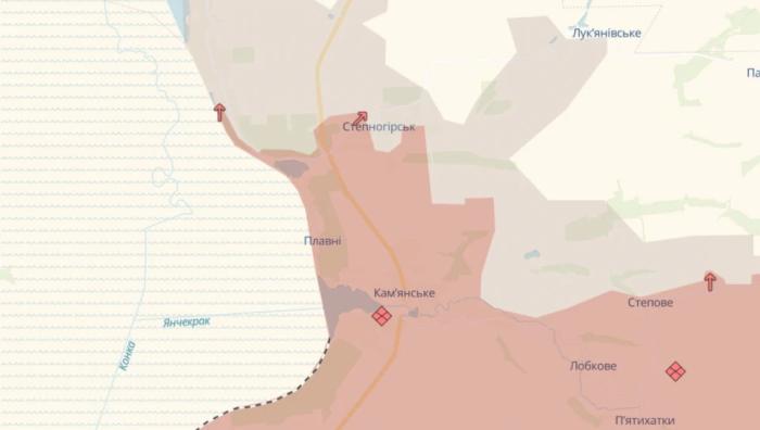 За даними мапи бойових дій, окупанти мали територіальні здобутки у Запорізькій області — просунулися у Степногірську.
