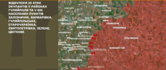 На Гуляйпільському напрямку минулої доби, 3 березня, відбулося 25 атак окупантів у районах Гуляйполя та у бік населених пунктів Залізничне, Варварівка, Гуляйпільське, Староукраїнка, Святопетрівка, Зелене, Цвіткове.