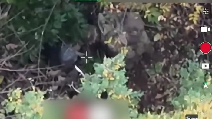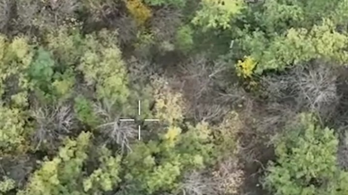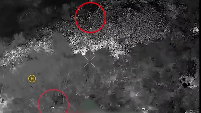Сигнатури російських військових поблизу позицій бійців 1 ОШП у тепловізійній камері дрона. Скриншот з відео YouTube/1 ОШП