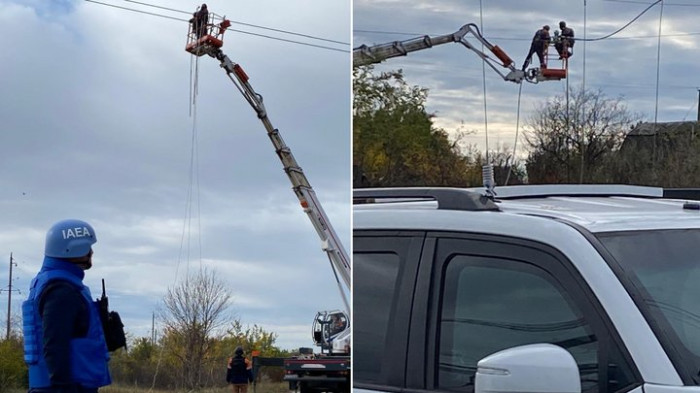 Ремонтні роботи на пошкоджених лініях електропередач, які живили тимчасово окуповану Запорізьку атомну електростанцію (ЗАЕС). Х/ІАЕА