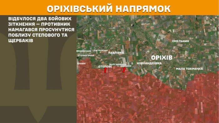 На Оріхівському напрямку відбулося два бойових зіткнення — противник намагався просунутися поблизу Степового та Щербаків.