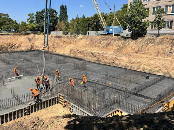 Сьогодні на одному з обʼєктів будівництва «підземних шкіл» у Запоріжжі підрядники проводять важливий технологічний процес — заливають бетон.