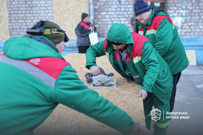 Станом на 7:00 4 лютого КП «Запоріжремсервіс» виконало значний обсяг робіт по «закриттю» вибитих вікон у восьми багатоквартирних будинках та низці нежитлових приміщень. Використано 149 листів OSB.
