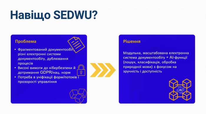 «Особливість модульної системи в тому, що вона не просто автоматизує процеси, а переосмислює логіку управління даними та документами, – зазначає Куликовський. – У ній передбачено контроль доступу для забезпечення безпеки та прозорості, а також механізми міграції даних із локальних систем. Звісно, будуть і AI-компоненти, інклюзивний дизайн. Все це робить проєкт привабливим не лише для учасників консорціуму».