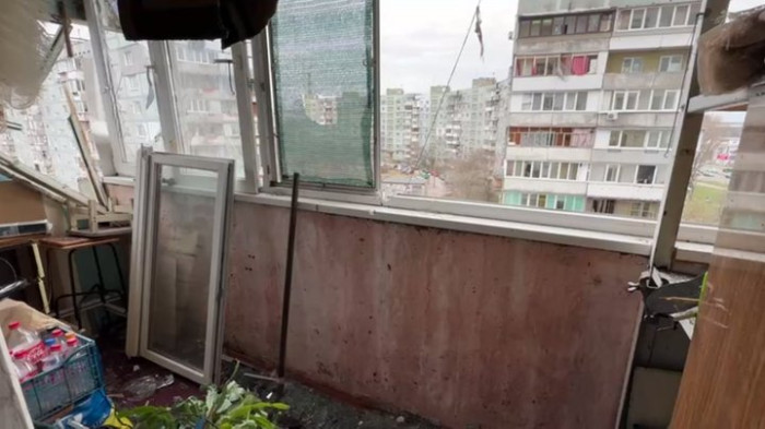 Понівечений балкон у квартирі Юрія. Наслідки російської масованої атаки по Запоріжжю, 24 березня 2026 року. Суспільне Запоріжжя/Поліна Мороз