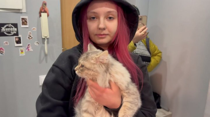 Жителька Запоріжжя тримає на руках кішку. Суспільне Запоріжжя/Олена Лисенко