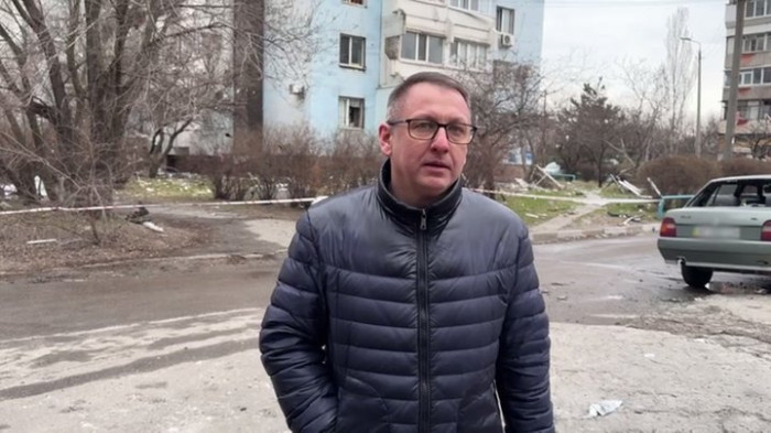 Житель запоріжжя Віталій стоїть біля свого напівзруйнованого будинку. Запоріжжя, 24 березня 2026 року. Суспільне Запоріжжя/Дар’я Пасічник