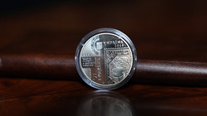 Пам’ятна монета 2018 року із зображенням 50 шагів. Напис на реверсі «Перщші поштові марки Української Народної Республіки. 100 років». Суспільне Запоріжжя