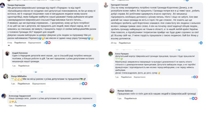 Допис Дениса Коротенка у Фейсбуці підтримали та прокоментували як мешканці громади, так і депутати Широківської сільради.