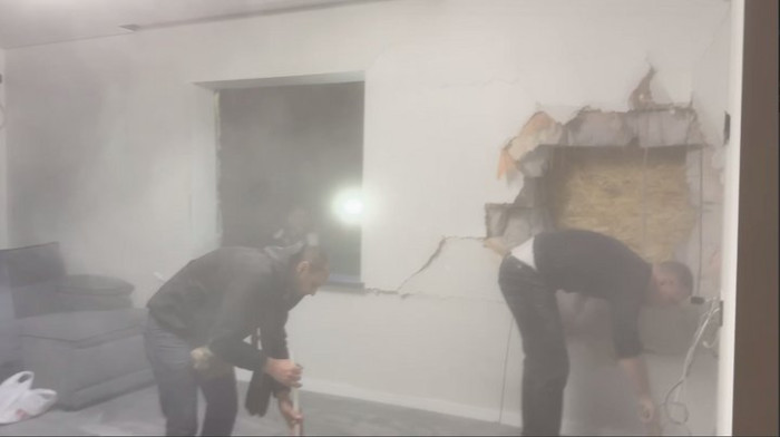 Нині родина продовжує прибирати скло, пил та уламки у пошкодженому будинку.