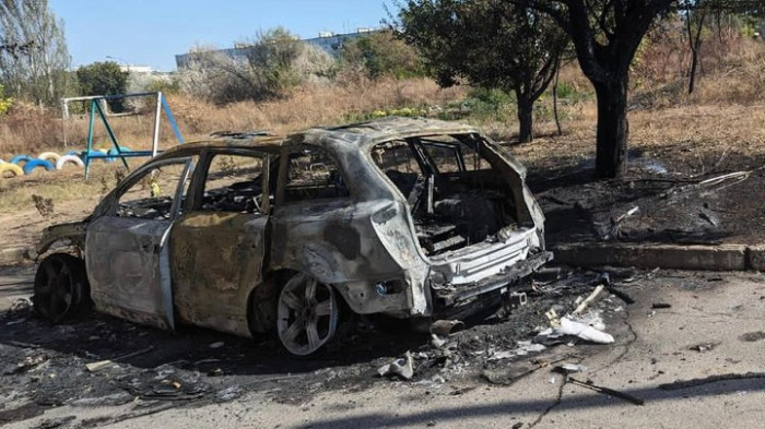 Згорілий автомобіль внаслідок атаки російського дрону, Степногірськ, Запорізька область, 19.09.2023. Архів Артема Перфілова