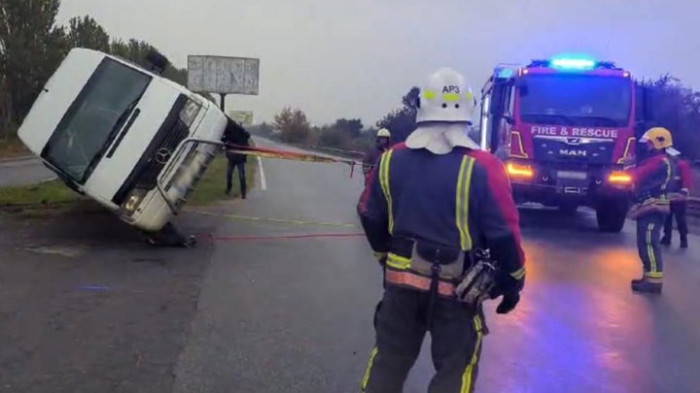 - ввечері — автомобіль Mersedes Sprinter перекинувся на дорозі через те, що водій не впорався з керуванням.
