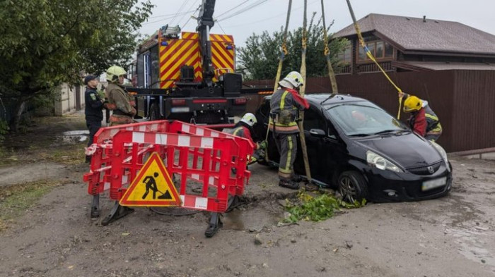 - вранці — автомобіль Honda провалився передніми колесами під ґрунт внаслідок проведення ремонтних робіт на водогоні;