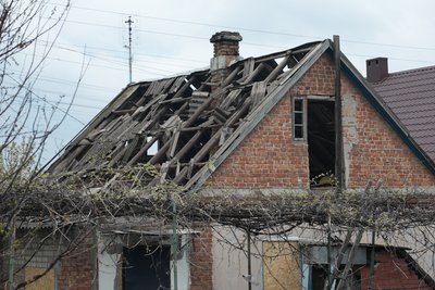 Валерій, власник пошкодженого будинку. Суспільне Запоріжжя"Даху немає. Вікна вже закрили ОСБ. Всередині все пошкоджено. Куди ховатися? Під диван. Що мені робити зараз, сиджу та й все. Завтра на роботу. Нормально все. Слава Богу, що хоч сам. Діти в іншому місті".