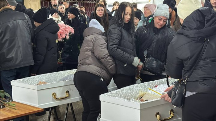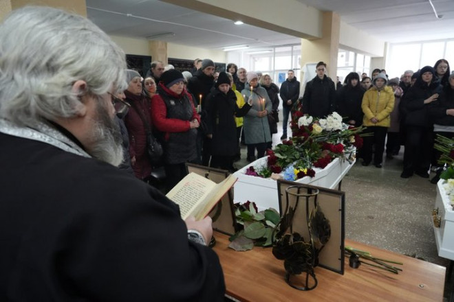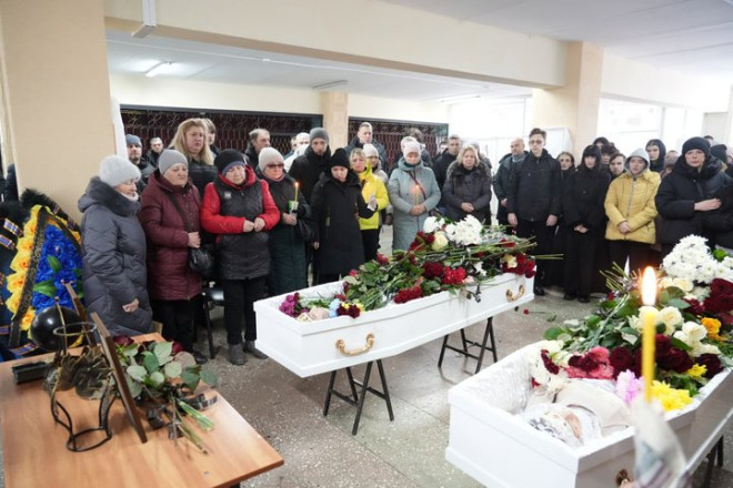 Прощання з загиблими внаслідок атаки РФ Софією Осадчею та Степаном Штиком. Суспільне Запоріжжя
