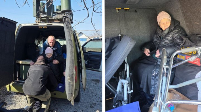 Волонтери евакуюють маломобільну жінку з села Біленьке. Особистий архів Владислава Маховського"РЕБ спрацював, а дрон впав ще на підльоті й не здетонував. Ми не чекали "другого заходу", а одразу продовжили рух і вийшли з небезпечної зони", – каже волонтер.