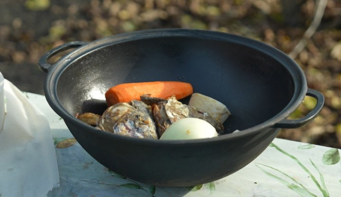 На пательні смажиться риба і у казанку вариться борщ. Суспільне Запоріжжя