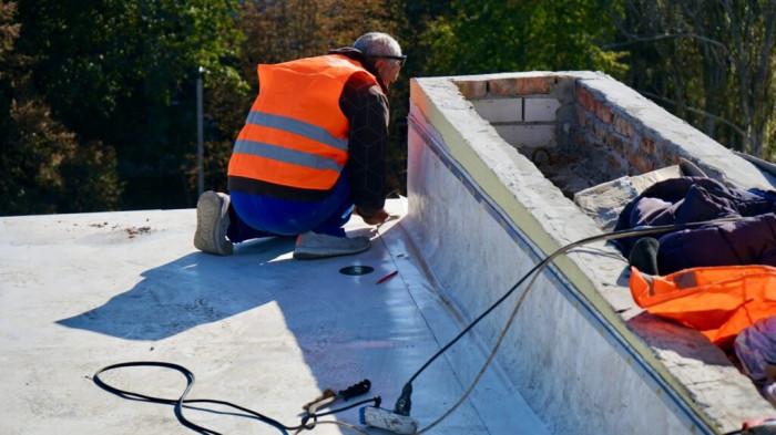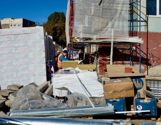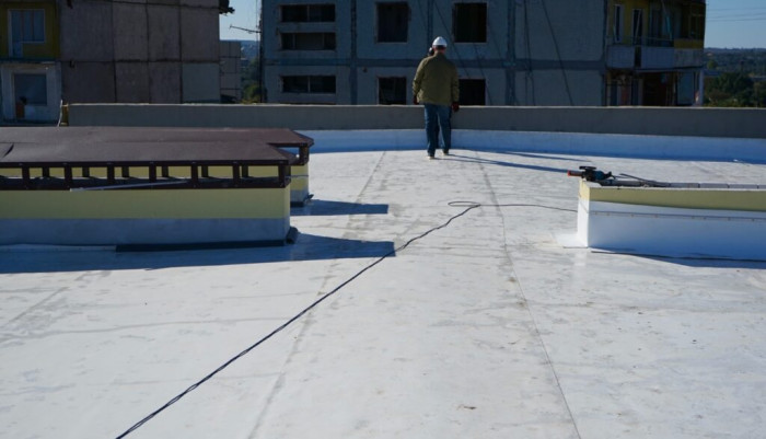 У постраждалому п’ятиповерховому будинку підрядник вже майже повністю завершив покрівельні роботи, залишилося лише «накрити» вентиляційні виходи. Зараз працівники утеплюють будинок, також займаються інженерними та електромережами.