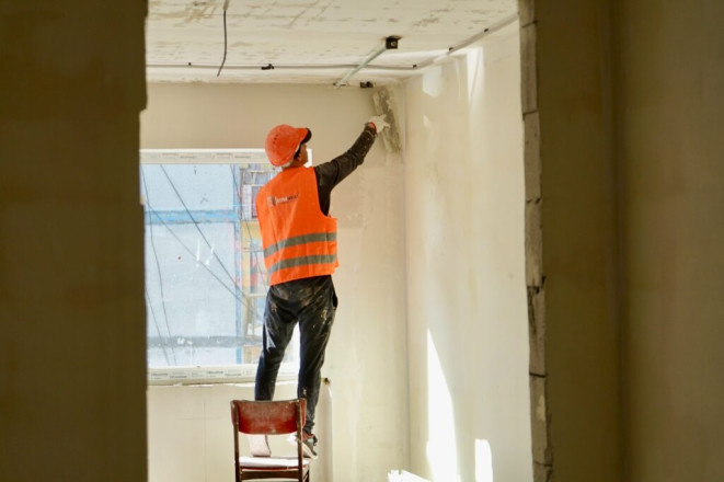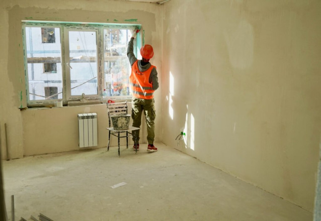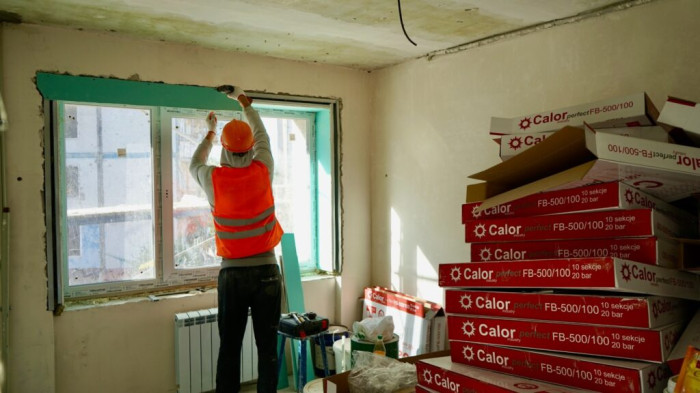 Підрядник також активізував роботи у квартирах: готують стіни до фарбування, поклейки шпалер та укладання плитки, встановлюють батареї опалення.
