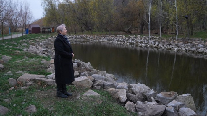 Ніна Мошенська біля водойми у Запоріжжі. Суспільне Запоріжжя