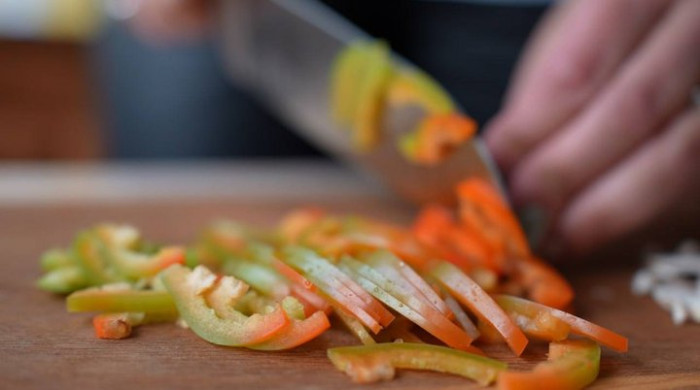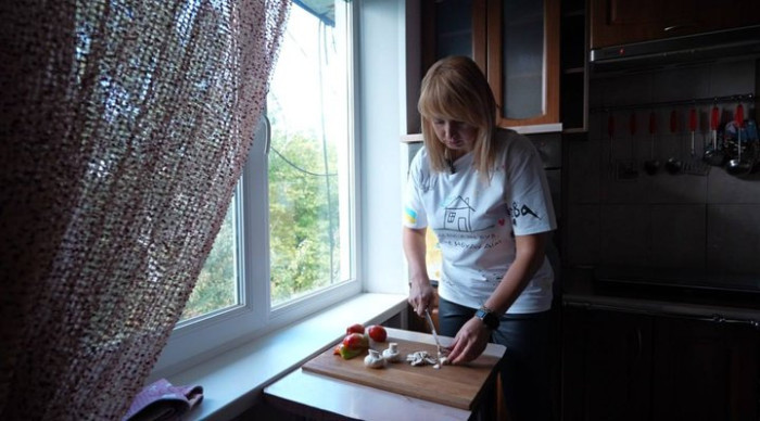 Тетяна нарізає овочі для сушіння. Суспільне Запоріжжя