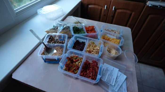 Щоденно Тетяна відварює та натирає десятки кілограмів картоплі, моркви й буряку, також нарізає печериці, томати й перець, а потім все сушить – це найтриваліший процес приготування страв: