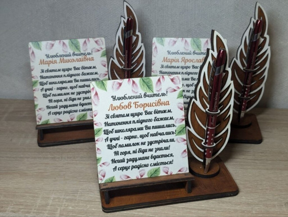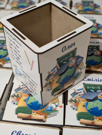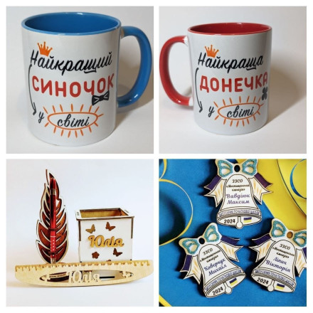 Найбільший попит – сезонні замовлення, пов’язані з дитячими подіями та святами. До початку навчального року активно замовляють тематичні медальки для школярів – «першокласник» та «випускник», а також іменні фоторамки для збереження спогадів із першого дзвоника. Для учнів середніх класів популярними залишаються практичні вироби: скарбнички, підставки для телефонів і органайзери, які допомагають облаштувати робочий простір. На різні події виготовляють нагородну атрибутику: медалі, кубки, грамоти.