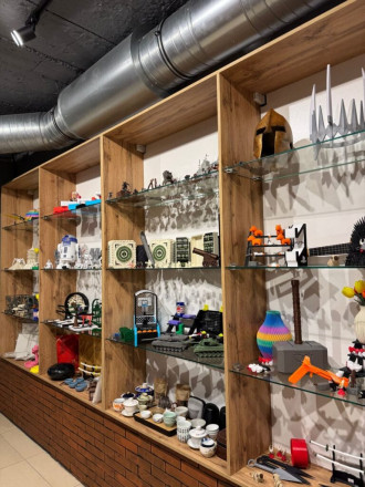 Придбали і два 3D-принтери. Їх використовують для виготовлення аксесуарів до настільних ігор та інших тематичних виробів, пов’язаних із хобі та попкультурою. Частину таких виробів продають у закладі, а також виготовляють на замовлення.