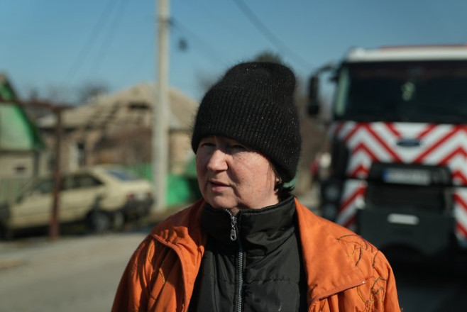 Юрій, власниця пошкодженого будинку внаслідок авіаудару РФ, 14 березня. Суспільне Запоріжжя