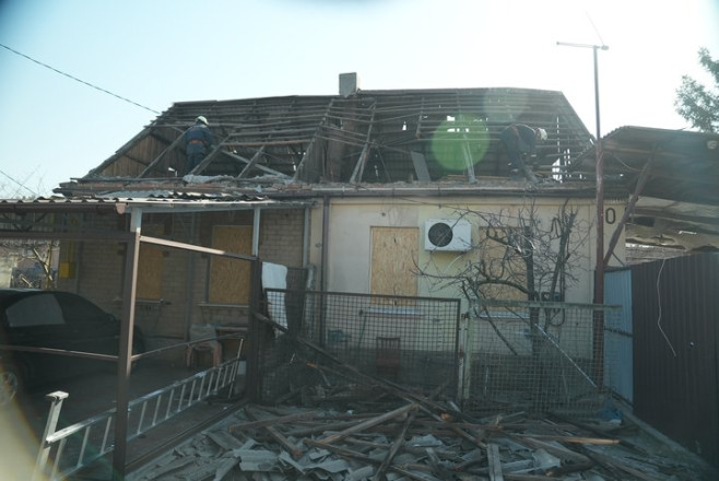 Пошкоджені будинки, автівки та понівечені подвір'я – наслідки атаки РФ. Олена, чий будинок потрапив під обстріл, каже: нині в оселі відновлють усе те, щоб можна було далі жити: