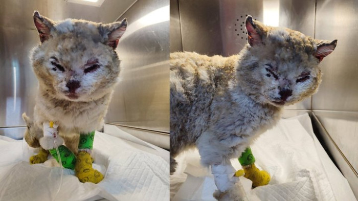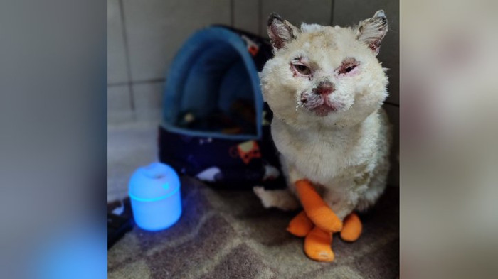 Інна Позднякова, волонтерка, голова громадської організації «Запорізька зоозахисна ліга». Суспільне Запоріжжя"Лікарі надіслали мені світлини. Він мав дуже серйозні опіки, вони були відкриті, як ранки. Лапи, хвоста, морди, очей, вух та опіки статевих органів. Через свої сторінки у Фейсбуці ми попросили допомогу у містян. Лікарня надала безкоштовно бокс, праця лікарів була безкоштовно для нього. Але були медикаменти: люди присилали їх, люди купляли. Вони перерахували на рахунок котика близько 10 тисяч гривень".