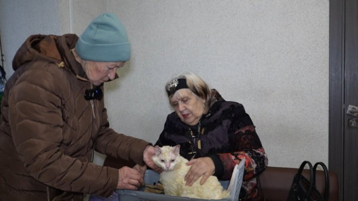 Валентина Турчиненко передає Бусю подрузі. Суспільне Запоріжжя"Туди просто прикро брати. Як тільки ми там трошки підбудуємо, щоб можна було вдома самим бути, і тоді ми його заберемо туди. Я ще довго плакати буду. Він в такому страшному стані був…".
