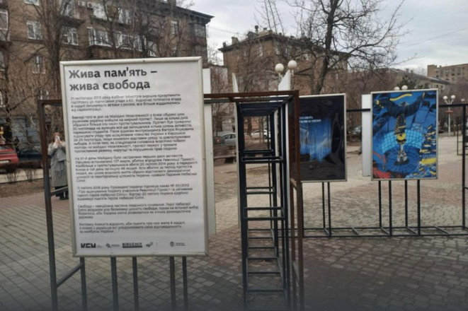Виставка плакатів у Запоріжжі до Дня Героїв Небесної сотні. ЗМР"Експозицію "Жива пам’ять – жива свобода" відкрито просто неба на бульварі Марії Примаченко, аби пам’ять жила й надалі, а кожен з українців міг усвідомлювати свою відповідальність за майбутнє України", – йдеться в повідомленні.