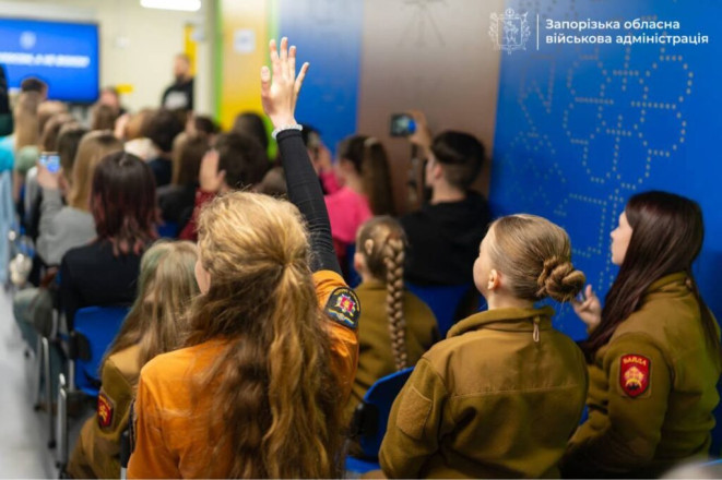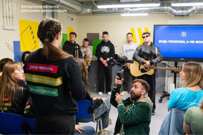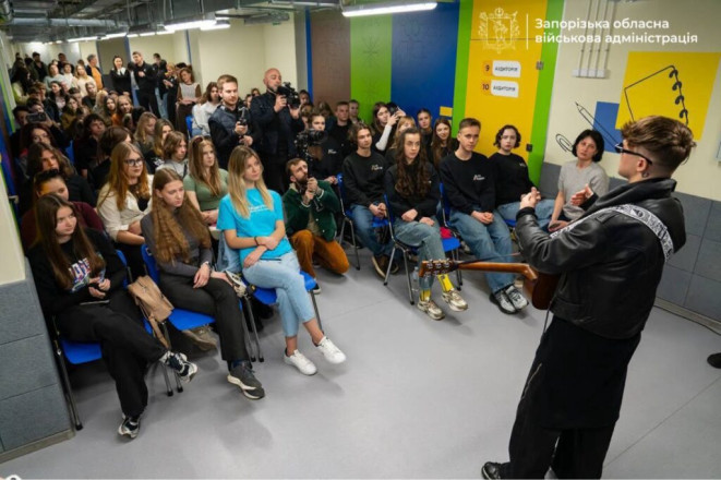 Так, вчора в одній із підземних шкіл зібрались майже 60 школярів із Запоріжжя та області: переможці олімпіад і МАН, активні учасники самоврядування, проєктів «ElitaUFuture» та «Ліга лідерів», представники юнацького руху «Байда». Молодь жваво спілкувалась з артистом та співала його хіти.