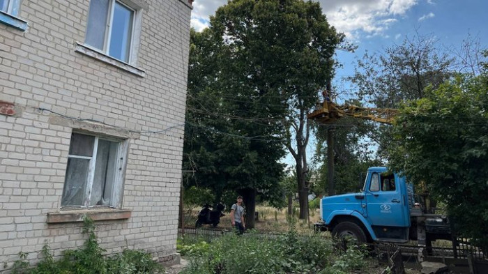 Електрики проводять ремонт обладнання, пошкодженого внаслідок російського обстрілу. Біленьке, Запорізька область. Суспільне Запоріжжя