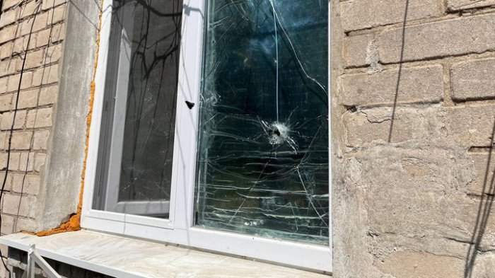 Розбите вікно внаслідок російського артилерійського обстрілу села Біленьке. Суспільне Запоріжжя