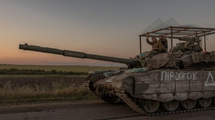 Українські військовослужбовці на танку біля кордону з Росією в Сумській області, 14 серпня 2024 року. Роман Пилипей / AFP via Getty Images