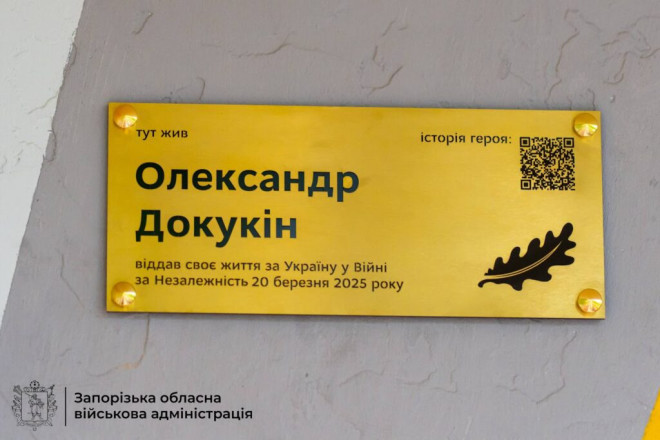 У Запоріжжі на будинку в якому проживав полеглий захисник Олександр Докукін встановили меморіальну табличку. Чоловік загинув 20 березня цього року на Покровському напрямку. Полеглому воїну було всього 35 років.
