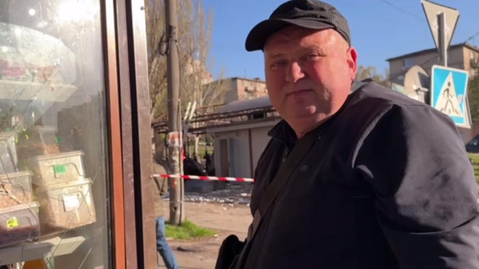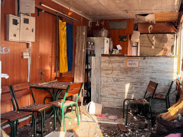 Олег, власник пошкодженого кіоску. Суспільне Запоріжжя"Поверхню видно, дах посунувся, доведеться все заново розбирати. Як дощ — це все сюди потече. Скло, майно, купа майна. Ми кіоск купили два роки тому. Жити за щось треба ж — будемо відновлювати".