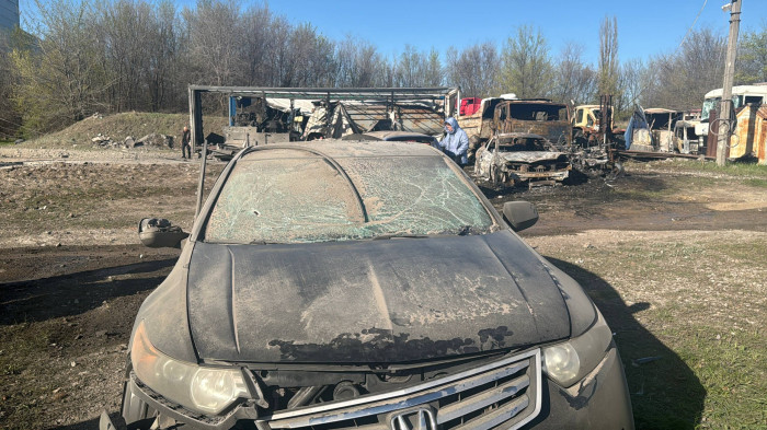 В іншому районі міста постраждала автостоянка. Внаслідок обстрілу тут сталася пожежа. Її власник Сергій Воронін розповідає: як дізнався про обстріл, відразу приїхав на місце: