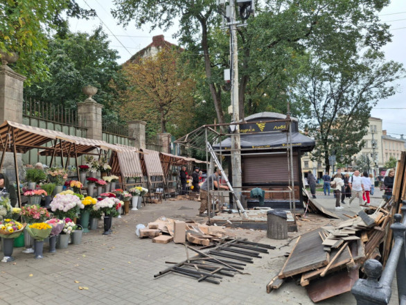 Робота щодо впорядкування території у Львові. Демонтаж двох кіосків з площі Галицької в історичному центрі міста.