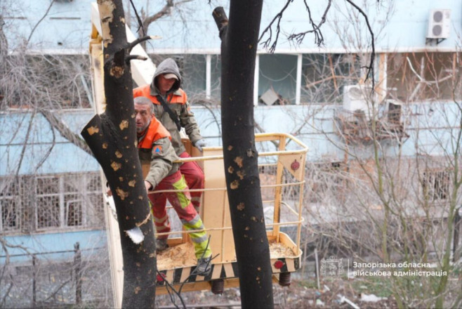 У Запоріжжі завершили першочергові роботи з ліквідації наслідків масованого російського обстрілу. Наразі тривають відновлювальні роботи.
