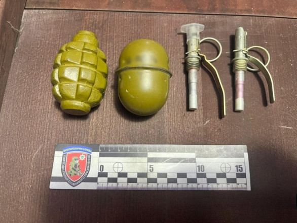 "Під час санкціонованого обшуку за місцем його проживання правоохоронці вилучили корпус гранати Ф-1, корпус гранати РГД-5 та два підривачі дистанційної дії".