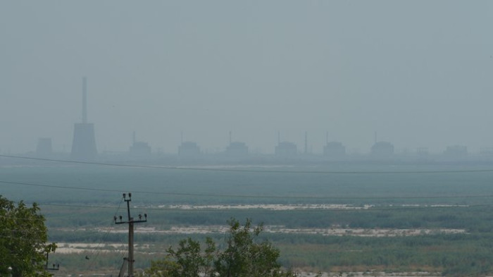 Вид на реактори та градирню окупованої Запорізької атомної електростанції з міста Нікополь Дніпропетровської області 29 серпня 2024 року. Суспільне Запоріжжя
