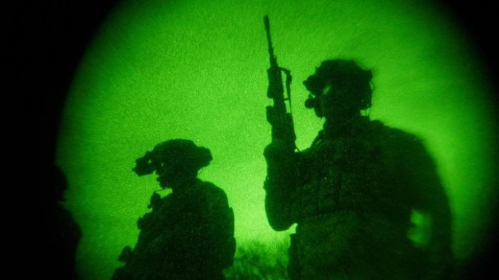 Військові підрозділу активних дій «Ferrata» Головного управління розвідки Міноборони України. Вид через прилад нічного бачення. Facebook/«Ferrata» І Підрозділ активних дій ГУР МО