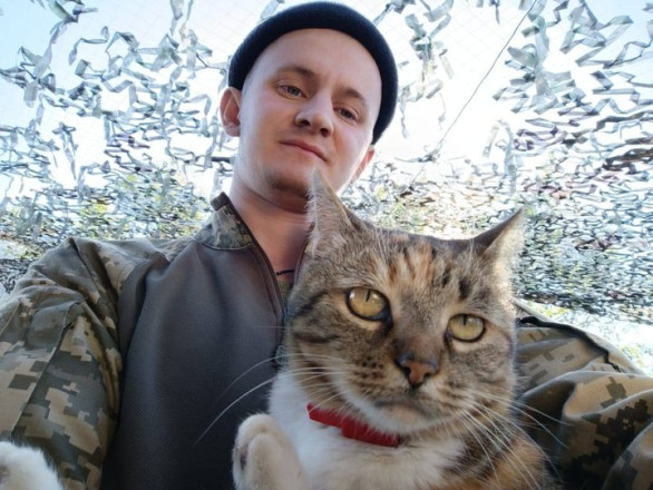 Військовослужбовець Роланд з котиком під час служби . З особистого архіву Роланда