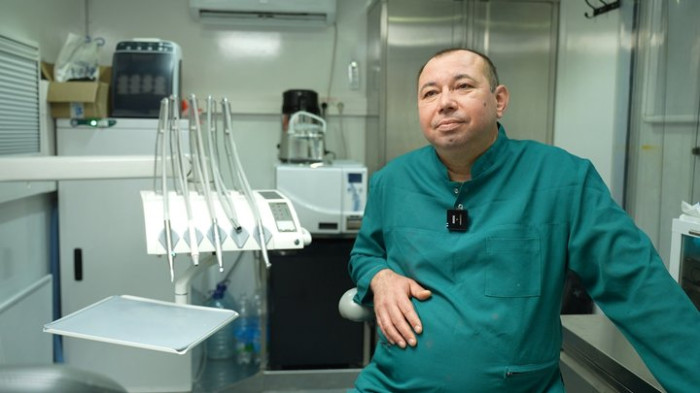 "Я, начальник пересувного кабінету. Медбрат, він за освітою зубний лікар. Він також веде прийом. Вже став досвідчений, він молодий, але якісно працює. І нам виділили ще одного стоматолога. Він в штаті в лікувальному відділенні, але працює як стоматолог".